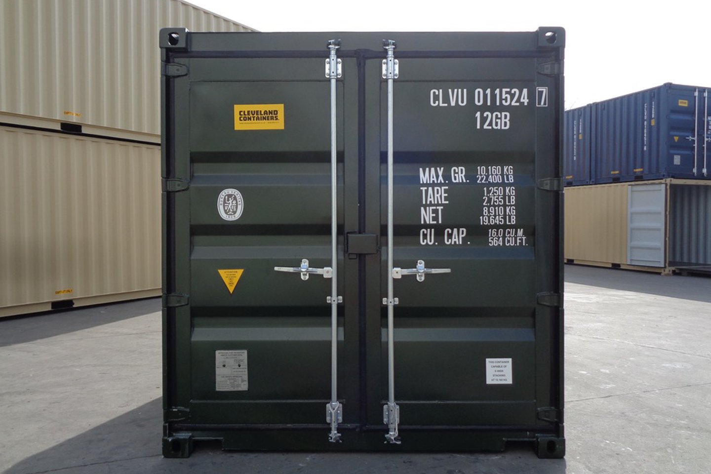 Exterior hinged double doors are located at the end of the container. Each door has two locking bars. A lockbox is factory fitted to the door.