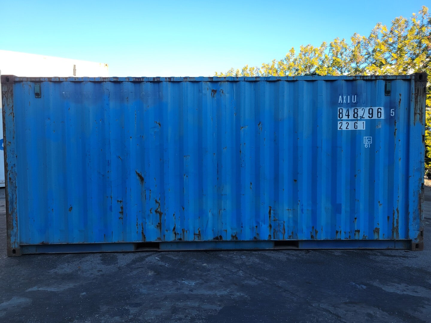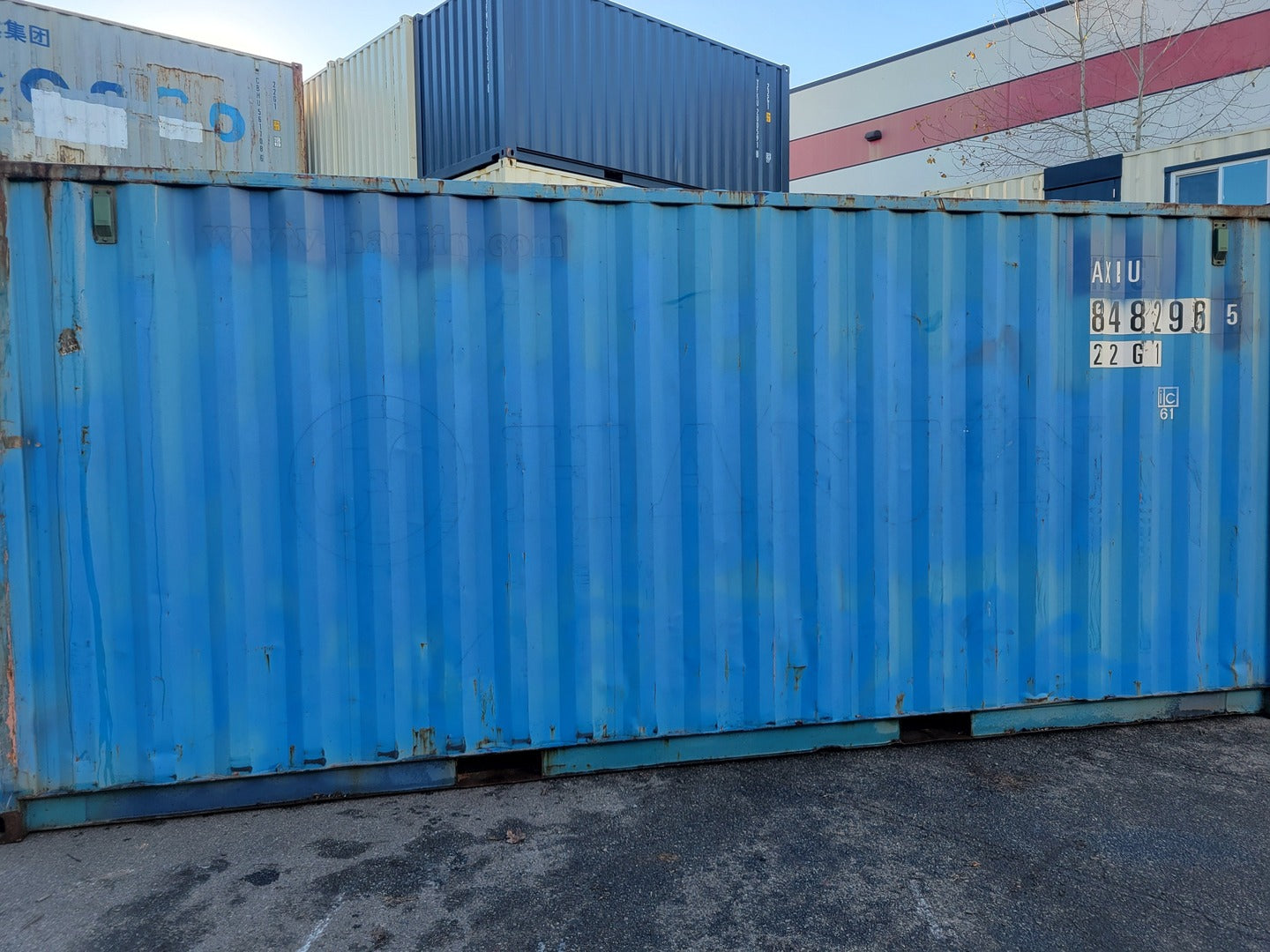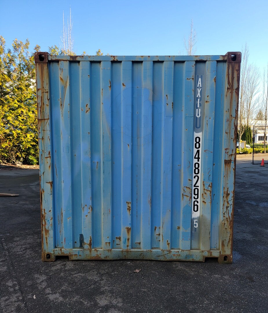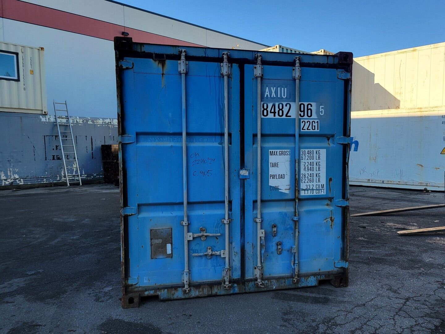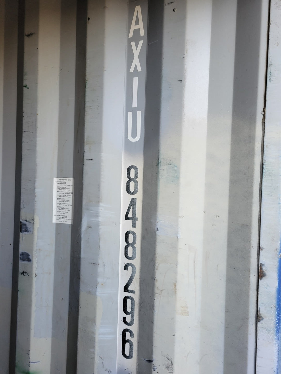The container is rated wind and watertight, meaning the interior remains protected from rain, snow, and wind-driven moisture under normal weather conditions. The container includes CSC plating for shipping.